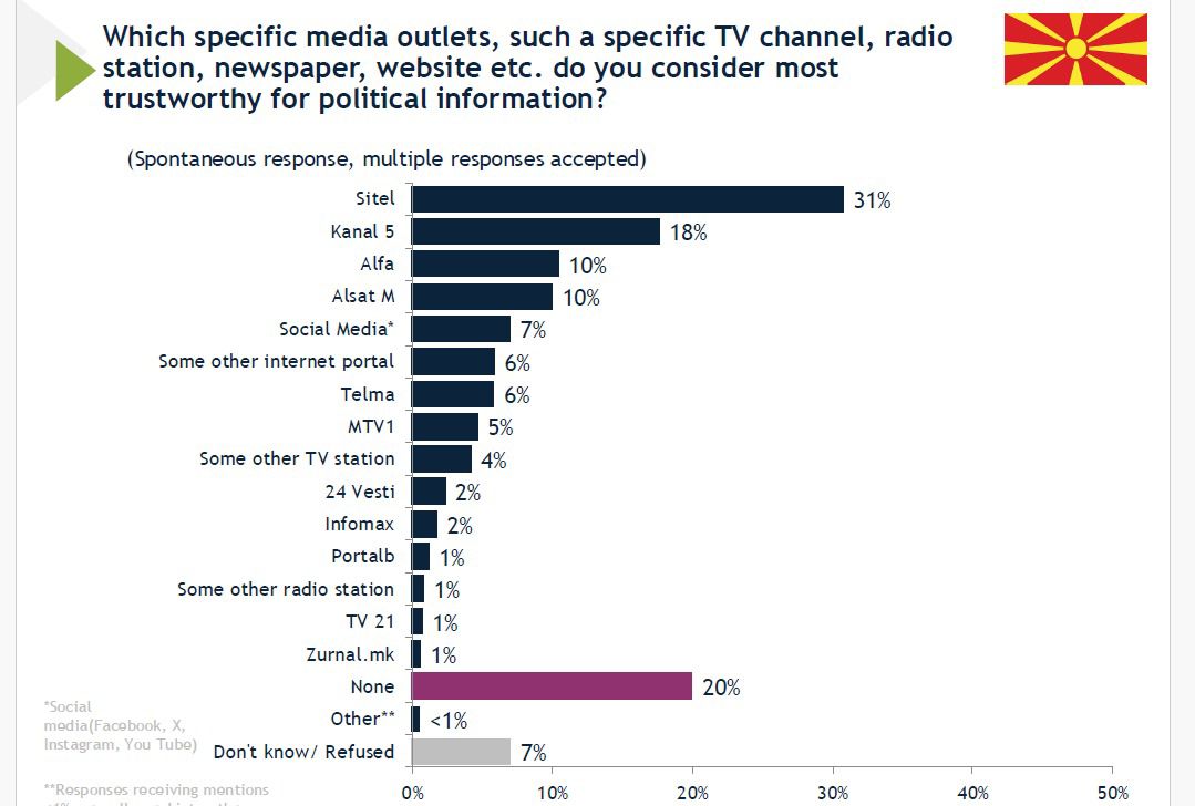 На прашањето „На кои медиум му верувате најмногу“, резултатите на листата на албанските медиуми се следни:
