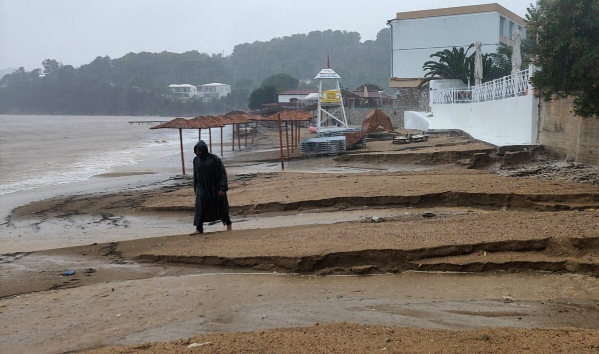 Островот Крф е силно погоден од поројни дождови. Патиштата се како реки, што го оневозможува движењето, се жалат жителите на островот.