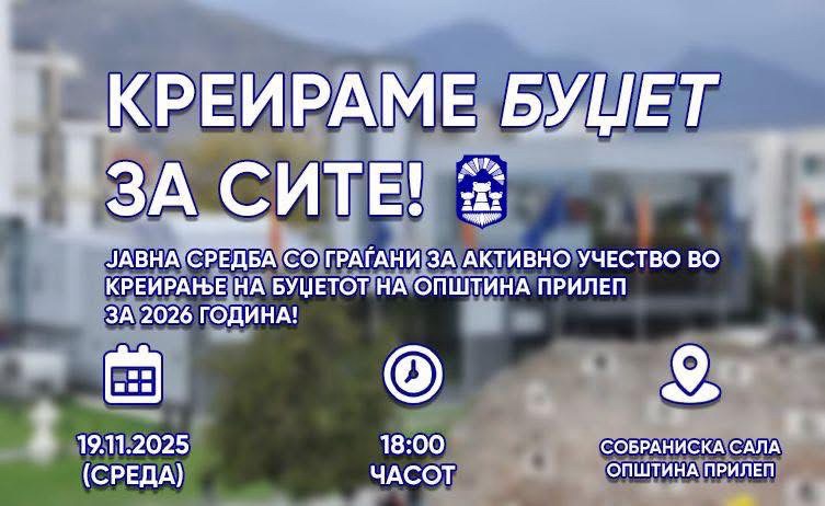 Општина Прилеп ги повикува сите граѓани да земат активно учество во процесот на креирање на Буџетот на Општина Прилеп за 2026 година.
