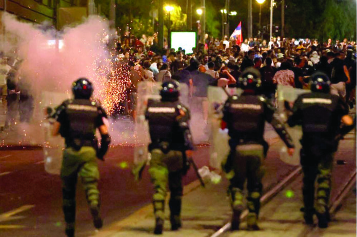 Антивладините протести низ Србија последнава недела опасно ескалираат во судири меѓу народот – од едната страна противниците на власта, од другата – нејзините поддржувачи. На протестите во четвртокот, во повеќе од 30 града, што полицијата ги растури по полноќ, повредени и уапсени се повеќе од 100 луѓе, а белег на ноќта ѝ дадоа и зачадените улици од солзавецот што го фрлаа полицајците и жандармите опремени со гас-маски, растерувањето мали групи демонстранти со пендреци и демолираните простории на владејачката СНС во Нови Сад.