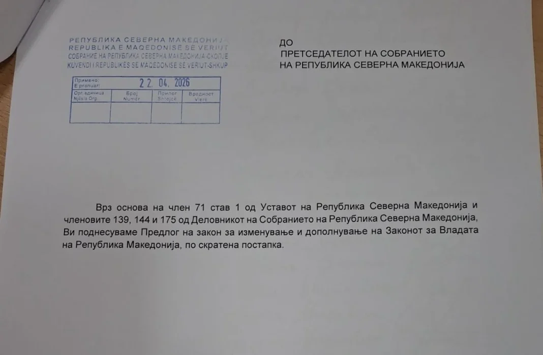 Пратеничката група на СДСМ поднесе Закон за измени на Законот за Влада по скратена постапка, забраната за двојно државјанство да важи за министрите, вицепремиерите и целиот состав на Владата и тоа веднаш.