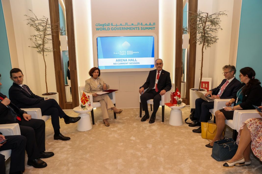 Претседателката Гордана Сиљановска-Давкова, во рамки на учеството на Светскиот самит на владите во Дубаи, оствари средба со претседателот на Швајцарската конфедерација, Ги Пармелан.