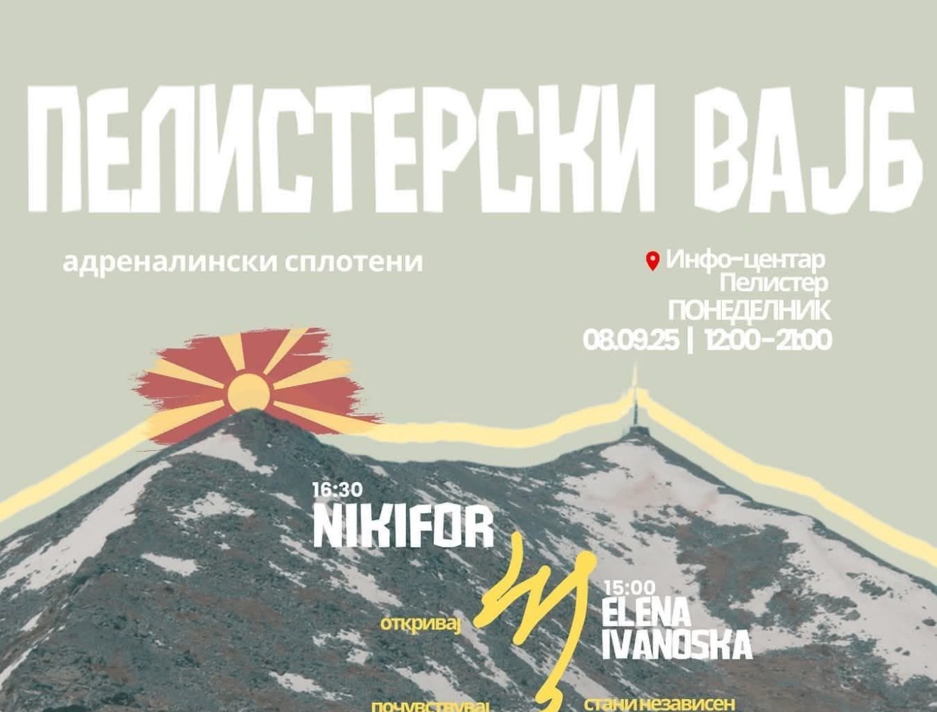 Настанот „Пелистерски Вајб“ има за цел да понуди уникатно доживување на Пелистер преку музика, дружење и уметност во природа.
