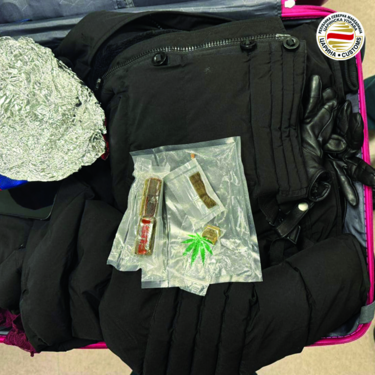 „Царински службеници на влез во државата на Меѓународен Аеродром Скопје спречија обид за криумчарење 48,8 грама хашиш, скриен во личен багаж на гостиварчанец родум од Швајцарија, кој патувал со лет Цирих – Скопје. Случајот е откриен при детална контрола и претрес на личниот багаж на патникот при што помеѓу неговите лични ствари е пронајдена вакумирана ќеса со хашиш, кој патникот ја купил во Германија со намера да ја пренесе и неовластено да ја пушти во промет во Македонија“, соопшти Царинската управа.