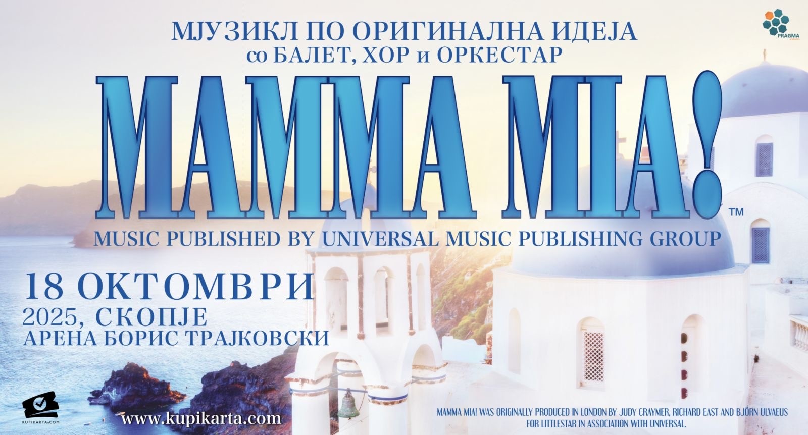 На 18 октомври 2025 година, арената „Борис Трајковски“ ќе блесне во полн сјај, претворајќи се во сцена на еден од најуспешните мјузикли во историјата – „Mamma Mia!“