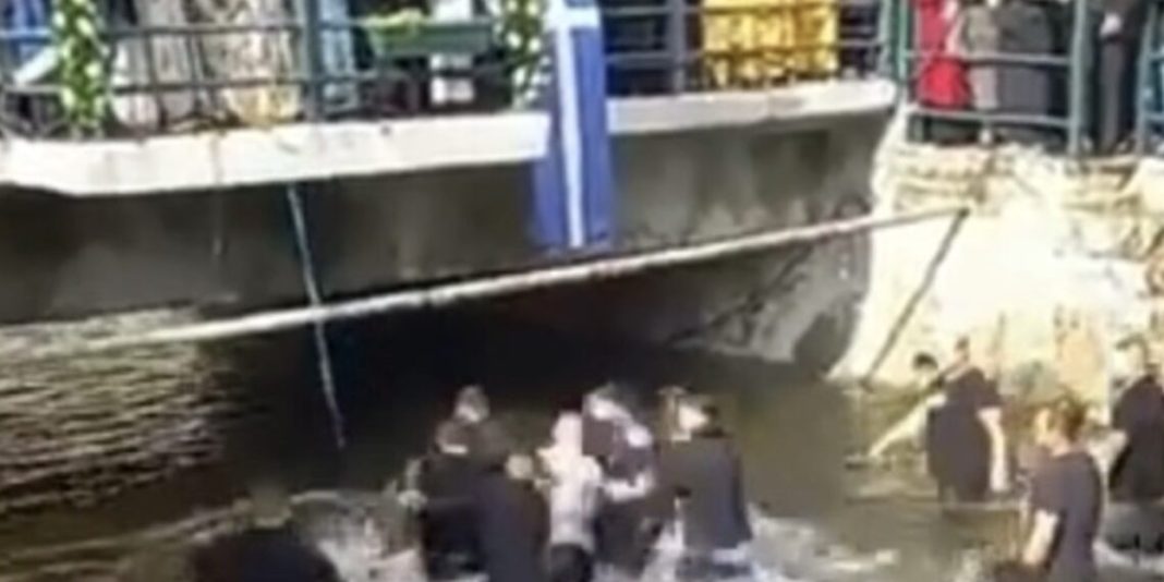 Во Лерин, Грција, за време на празникот Богојавление, се случија вистински сцени. Локалните жители и посетители скокаа во замрзнатиот Сакулевски поток за да го фатат Светиот Крст.